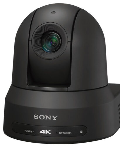 Smoothly capture UHD 4K video even in low-light settings with the black BRC-X1000 4K PTZ Camera from Sony.