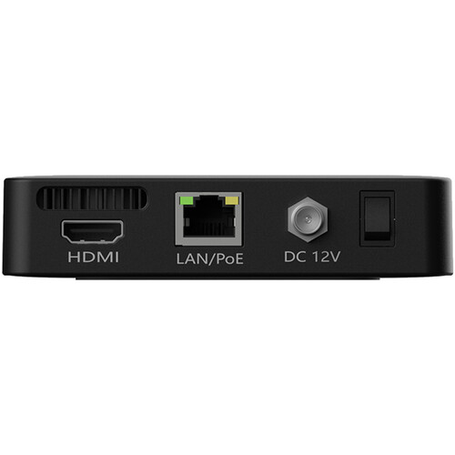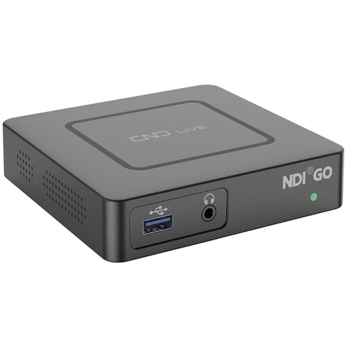Take NDI sources and output them into HDMI video with the NDI Go NDI to HDMI Decoder from CNDLive. The decoder supports all NDI formats, including high-bandwidth NDI, NDI|HX2, and NDI|HX3. Its HDMI output port can support up to 4K60 video for use in live production and digital signage applications. A 3.5mm audio output is included for headphones and features intercom support. A USB-A port facilitates remote PTZ camera control. The NDI Go can be powered by PoE via Ethernet connectivity or using the DC barrel input.