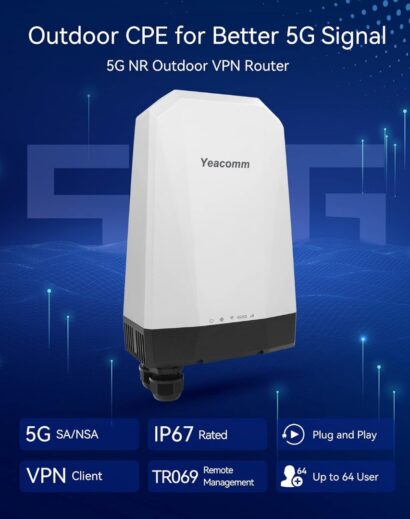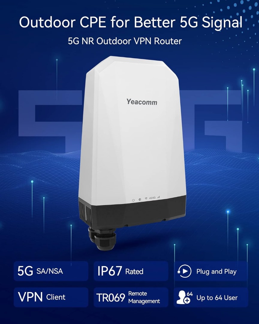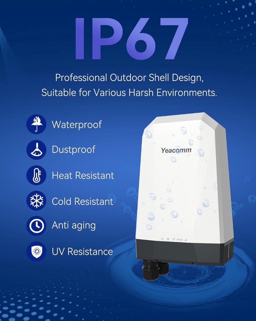 Yeacomm Dual SIM CARDS NR610 is a 5g outdoor Waterproof High Grade Industrial CPE which supports the latest 5G nr technology and full compatible with 4g/3g networks. It supports advanced gigabit networking functionalities. it enables wide service coverage and provides high data throughput and networking features to customers who needs easy broadband access.