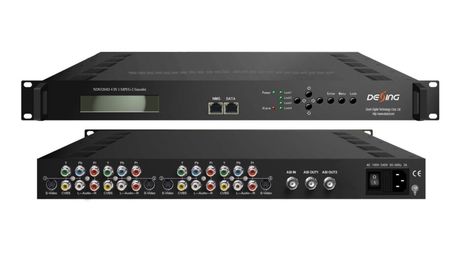 The NDS3204D 4 in 1 MPEG-2 Encoder is a professional SD audio & video encoding and multiplexing device. It has 4 channel CVBS video input interfaces, 4 pairs of unbalanced audio input interfaces, supporting MPEG-2 video encoding and MPEG 1 Layer 2 audio encoding. This device can simultaneously encode 4 channel SD audio & video; moreover, it has an ASI input and can multiplex the input TS with the 4 encoded SPTS to generate a MPTS output. In conclusion, its high integrated and cost effective design makes the device widely used in varieties of digital distribution systems such as cable TV digital head-end, satellite digital TV broadcasting etc.