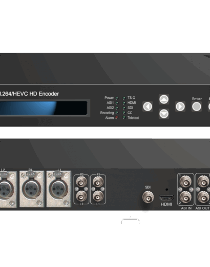 Multiple audio and video encoding formats are available to meet customers’ various requirements. It supports 2 stereo (4 mono) to mix with the video to form a stream output. The encoded program will finally output in TS through ASI/IP port.