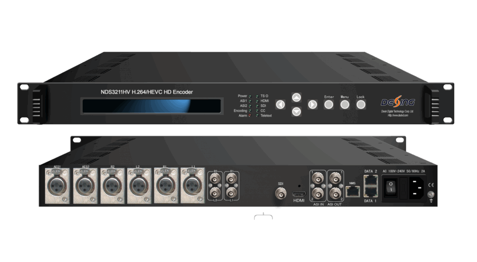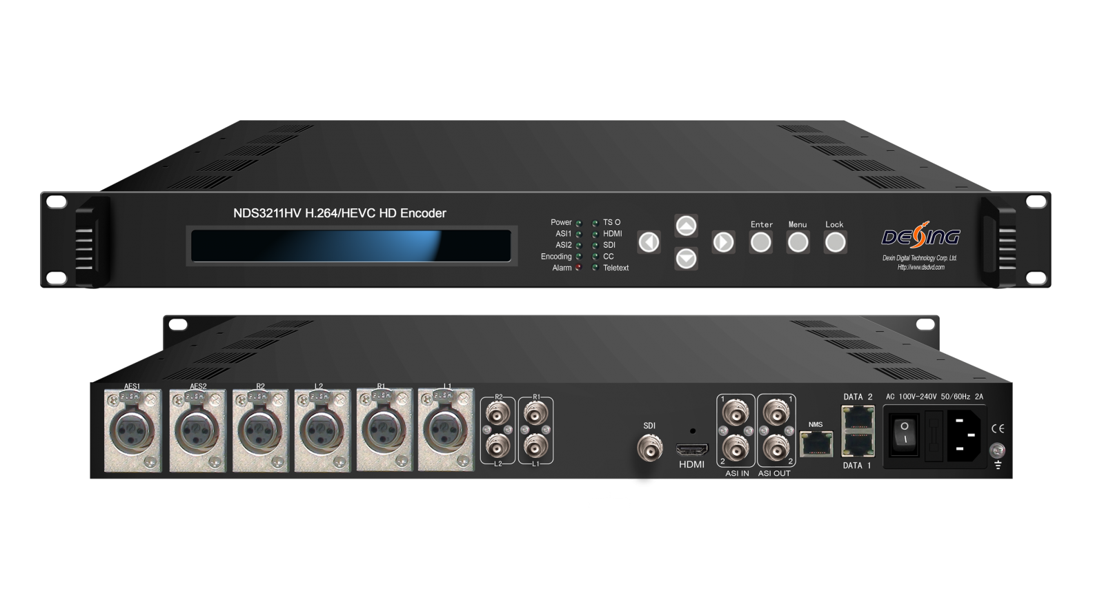 NDS3211HV H.264/HEVC HD Encoder is the new broadcasting audio & video encoding device with powerful functionality. It is equipped with multiple video input interfaces (HDMI, HD-SDI) and audio input interfaces (HDMI, SDI, AES, RCA and XLR) to make it possible to compatible with different signal sources.