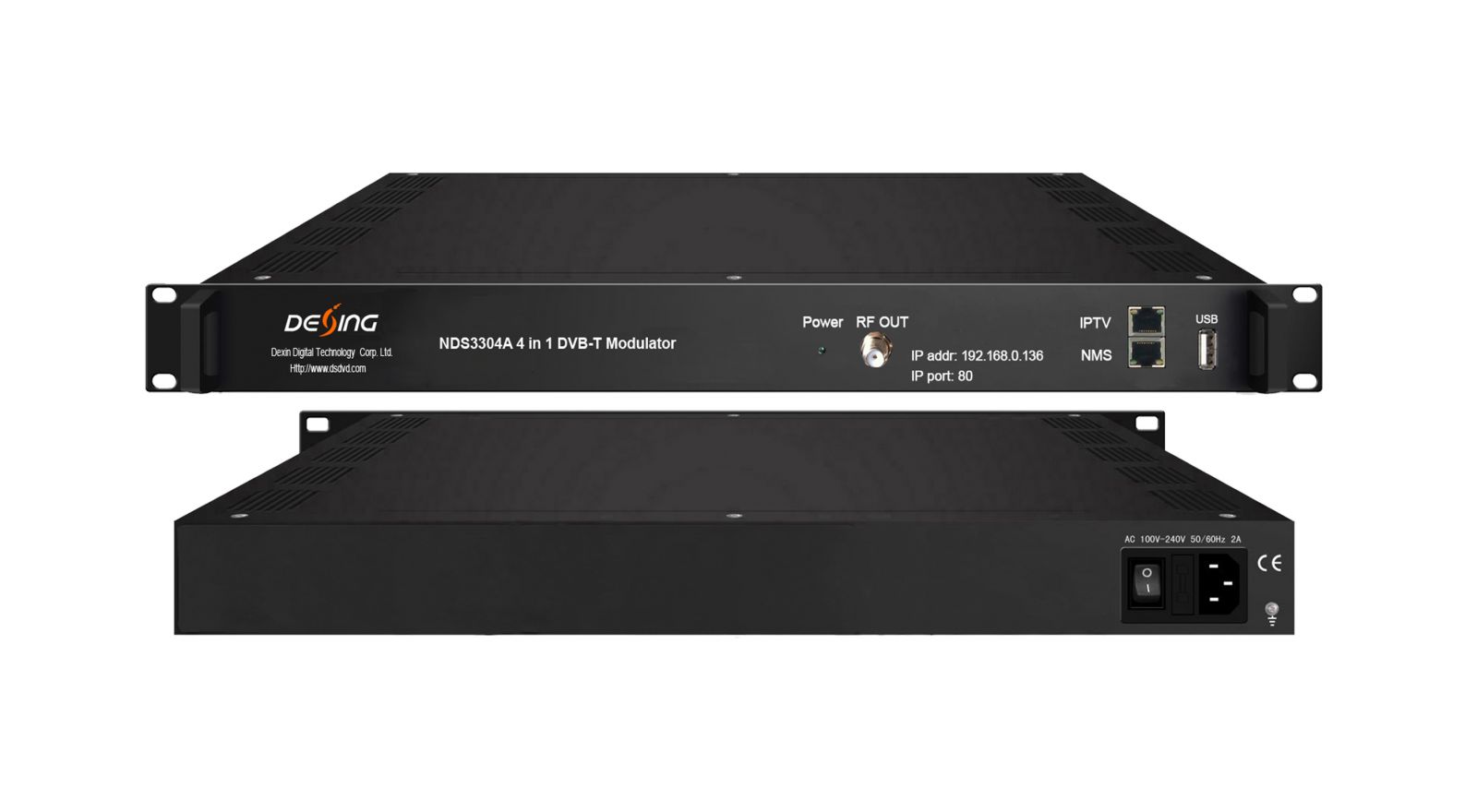 NDS3304A is a cost-effective DVB-T modulator developed according to DVB-T (EN300744) standard. It has 128 IP inputs. After multiplexing and modulating process, it gives 4 DVB-T non-adjacent carriers (50MHz~960MHz) output through the RF output interface. To meet customers’ various requirements, this device is also equipped with data port for 4 MPTS output over UDP and RTP. This is very adaptable to newly generation DTV broadcasting system.