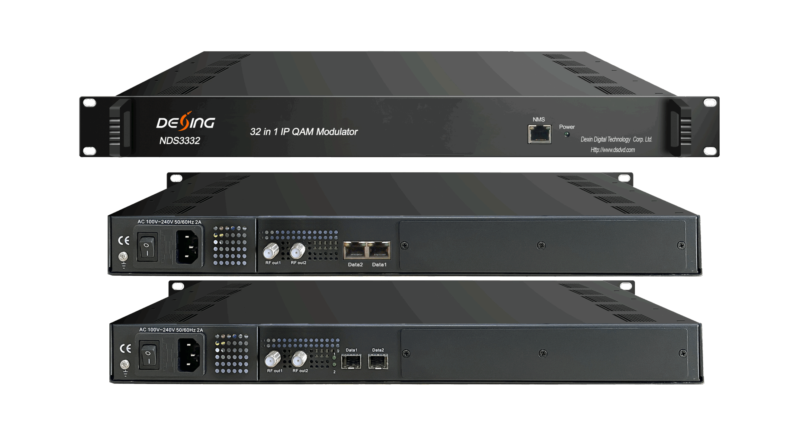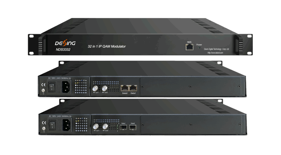 NDS3332 IP QAM modulator is Mux-scrambling-modulating all-in-one device developed by DEXIN. It has 32 multiplexing channels, 32 scrambling channels and 32 QAM (DVB-C) modulating channels, and supports maximum 1024 IP input through the GE port and 32 non-adjacent carriers (50MHz~960MHz) output through the RF output interface. The device is characterized with dual RF output ports which broaden the bandwidth for QAM carriers.
