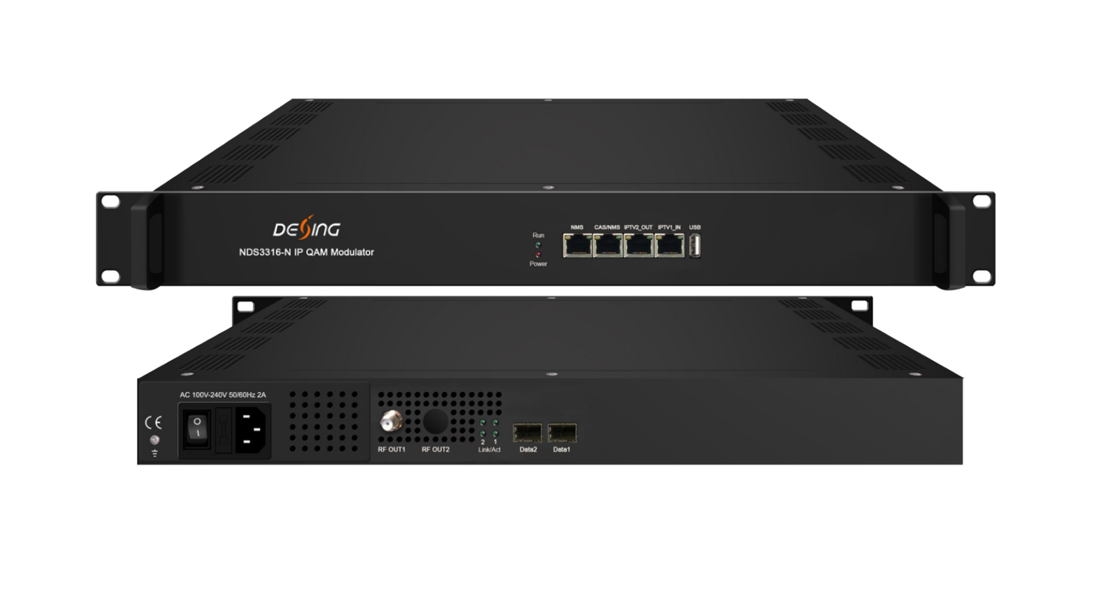 NDS33XX-N Series support multi-protocol IP inputs over UDP/RTP/RTSP/HLS/HTTP/SRT. It is flexible to choose different modulator cards to support different modulation output, such as DVB-C, DVB-T, ATSC and ISDB-T. NDS33XX-N Series bring a new level of intelligence and high performance to the CATV system at a cost-effective price offer.
