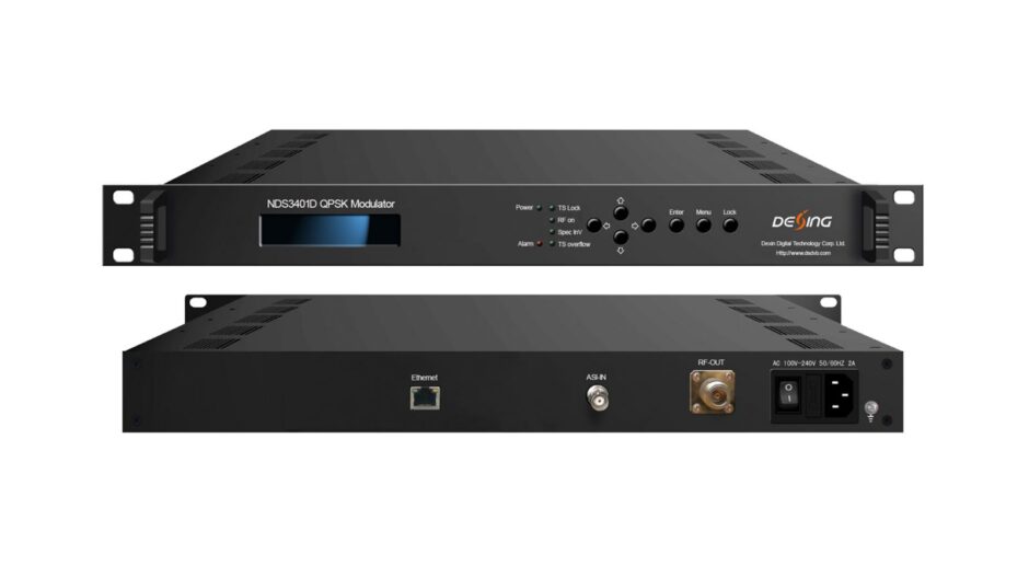 The DEXIN NDS3401D QPSK modulator is developed according to DVB-S (EN300421) QPSK standard. It has powerful spectral efficiency, advanced anti-jamming and competitive price-performance ratio. To guarantee the high transmission performance, this QPSK modulator adopts the disposal of energy diffusing, RS coding, convolution interleaving and pre-modulated baseband shaping. To sum up, all the approaches make this NDS3401D QPSK modulator widely used in Broadcasting, Interactive Services, News Gathering and other Broadband satellite applications.