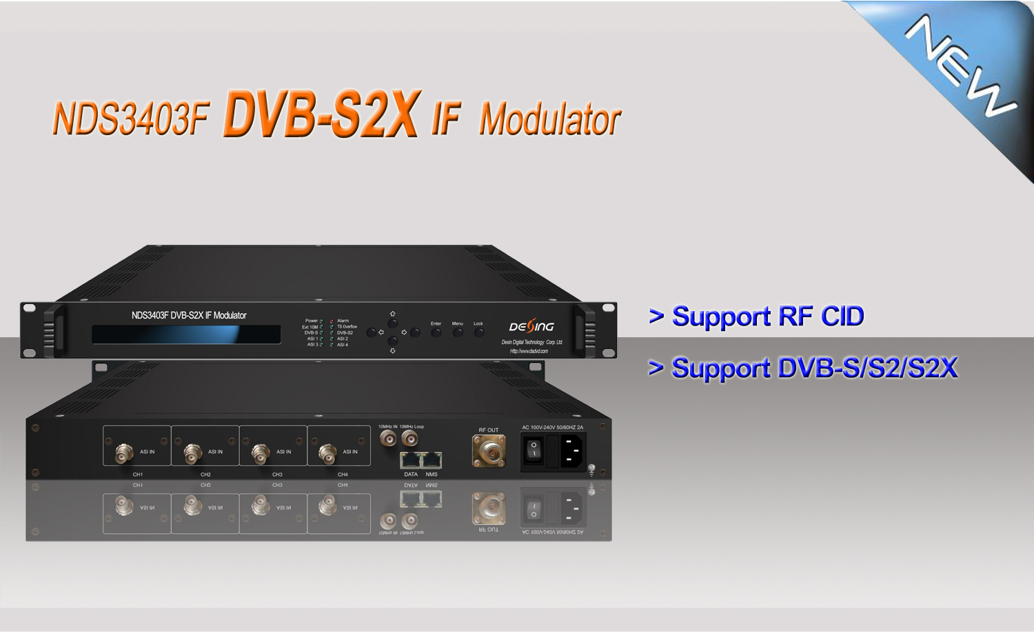 With its high cost-effective design, DEXIN NDS3403F DVB-S2X IF modulator is wildly used for broadcasting, interactive services, news gathering and other broadband satellite applications.