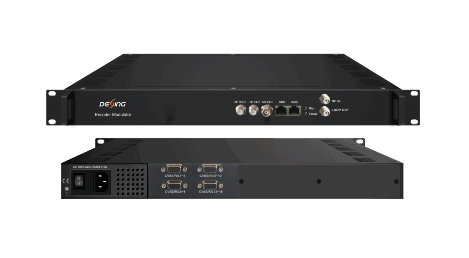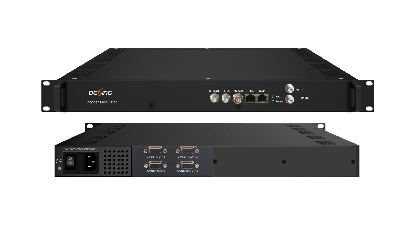 NDS3526SA is a high performance and cost-effective encoder modulator designed by Dexin. It supports 16 CVBS input with MPEG4 AVC/H.264 Video encoding and 4ch DVB-C/T non-adjacent carrier outputs with multiplexing (and scrambling in DVB-C out version) included. It also supports up to 128 IP input for re-mux and IP (4MPTS) output through Data port as mirror of carriers. NDS3526SA is also characterized with high integrated level, high performance and low cost. This is very adaptable to newly generation CATV broadcasting system.