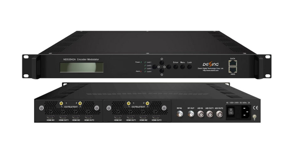 NDS3542A V2 4K encoder modulator is DEXIN’s new breakthrough all-in-one devices which integrate encoding (H.264 /H.265) and modulating to convert V/A signals into Digital RF output. It is equipped with 4 HDMI channels input and 1 ASI input(optional) and output via 2 ASI ports(optional) and 1 DATA (4*SPTS or 2 or 4 MPTS–as per carrier numbers)output over UDP, RTP/RTSP. The latency has been greatly reduced to achieve an extremely low value from the encoding progress to the decoding terminals.