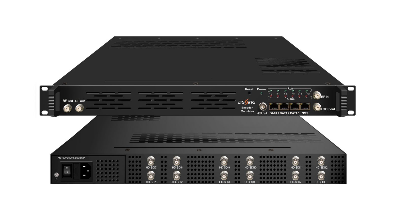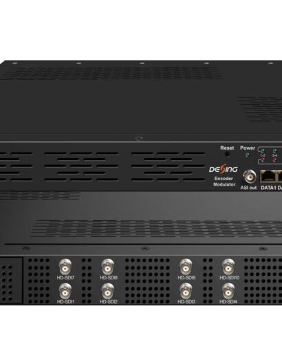 NDS3544MD HD encoder modulator is a professional high integration device which includes encoding, multiplexing, scrambling and modulating. It supports 12 HD-SDI with CC inputs, one DVB-C tuner input and maximum 512 IP input through Data1 (GE) port. It also supports DVB-C RF out with 16 non-adjacent carries or DVB-T RF out with 8 non-adjacent carriers and supports 16 MPTS as mirror of 16 carriers or 8 MPTS as mirror of 8 carriers through Data2 (GE) output port. To meet customers’ various requirements, it is also equipped with 1 ASI output (Optional) as mirror of one of MPTS.
