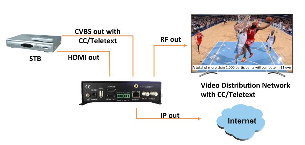 The signals source could be from STB, satellite receiver, closed-circuit television cameras and etc. Its output signal is to be received by TVs or STBs etc.